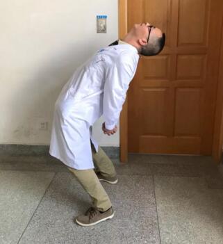 雙手向后合掌,十指交叉,依次擴(kuò)肩,伸肘,挺肚子,仰頭,堅(jiān)持幾秒身