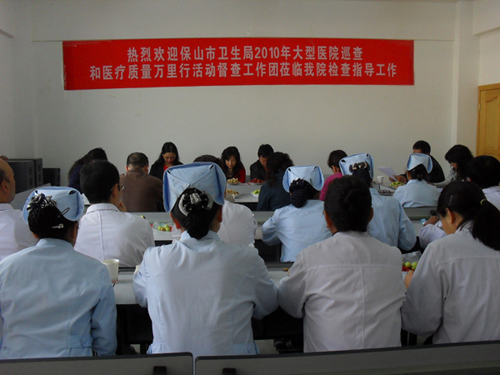 保山市衛(wèi)生局2010年大型醫(yī)院巡查和醫(yī)療質(zhì)量萬(wàn)里行活動(dòng)督查工作團(tuán)蒞臨我院檢查指導(dǎo)工作.我院領(lǐng)導(dǎo)向工作團(tuán)做了匯報(bào)并介紹我院目前遇到的難題