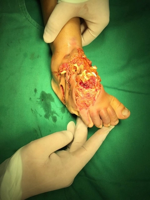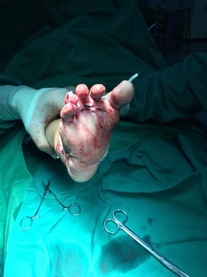 事情是這樣的,小星是保山施甸一名3歲女童,出門時不幸遭遇車禍,當時右足遭遇嚴重碾壓。車禍后曾到外院就診,外院醫(yī)生告訴小星媽媽因為右足毀損嚴重,需要截肢,小星媽媽當場已泣不成聲,小星才3歲,就要截肢,她以后該怎么辦?她一再要求醫(yī)生想想辦法,能不能保住這只小腳。于是外院醫(yī)生給予包扎止血后建議轉(zhuǎn)入我院創(chuàng)傷顯微外科試試。?xml:namespace>